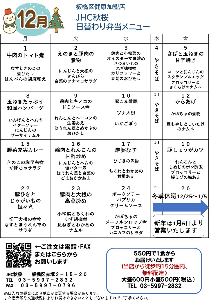 12月のメニューはこちらです。