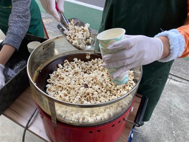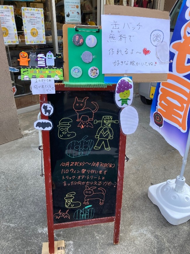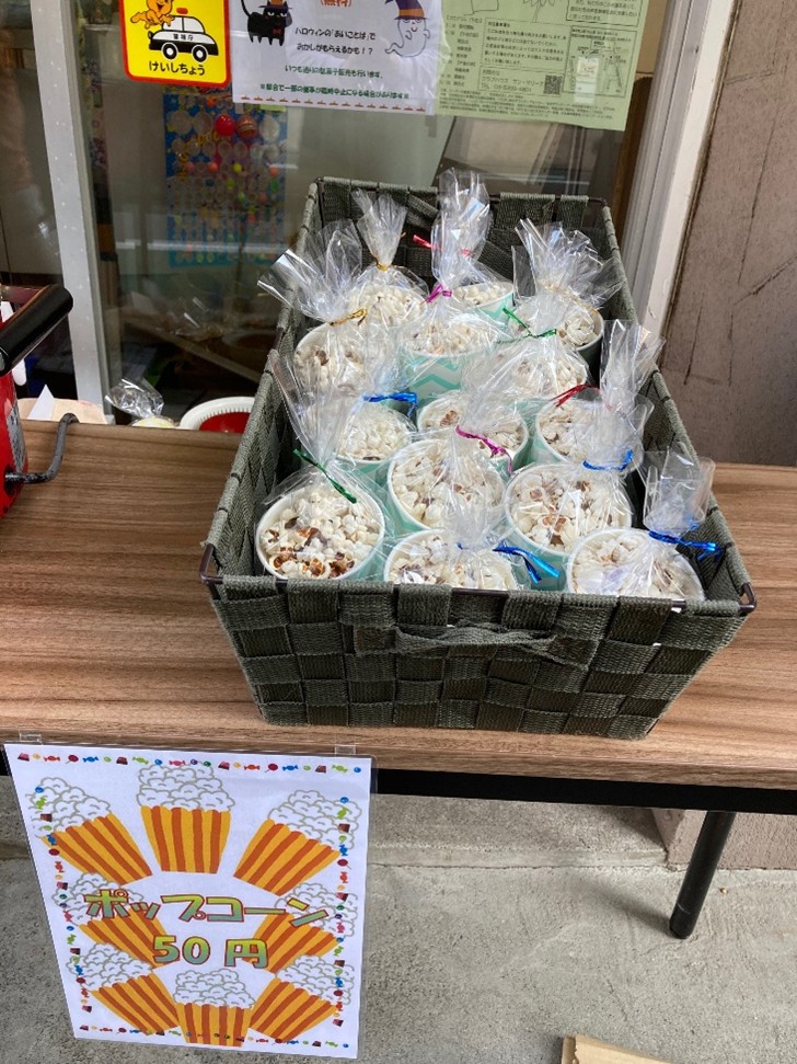 ハロウィン祭りでは、今年はポップコーンの販売や缶バッチの無料体験
